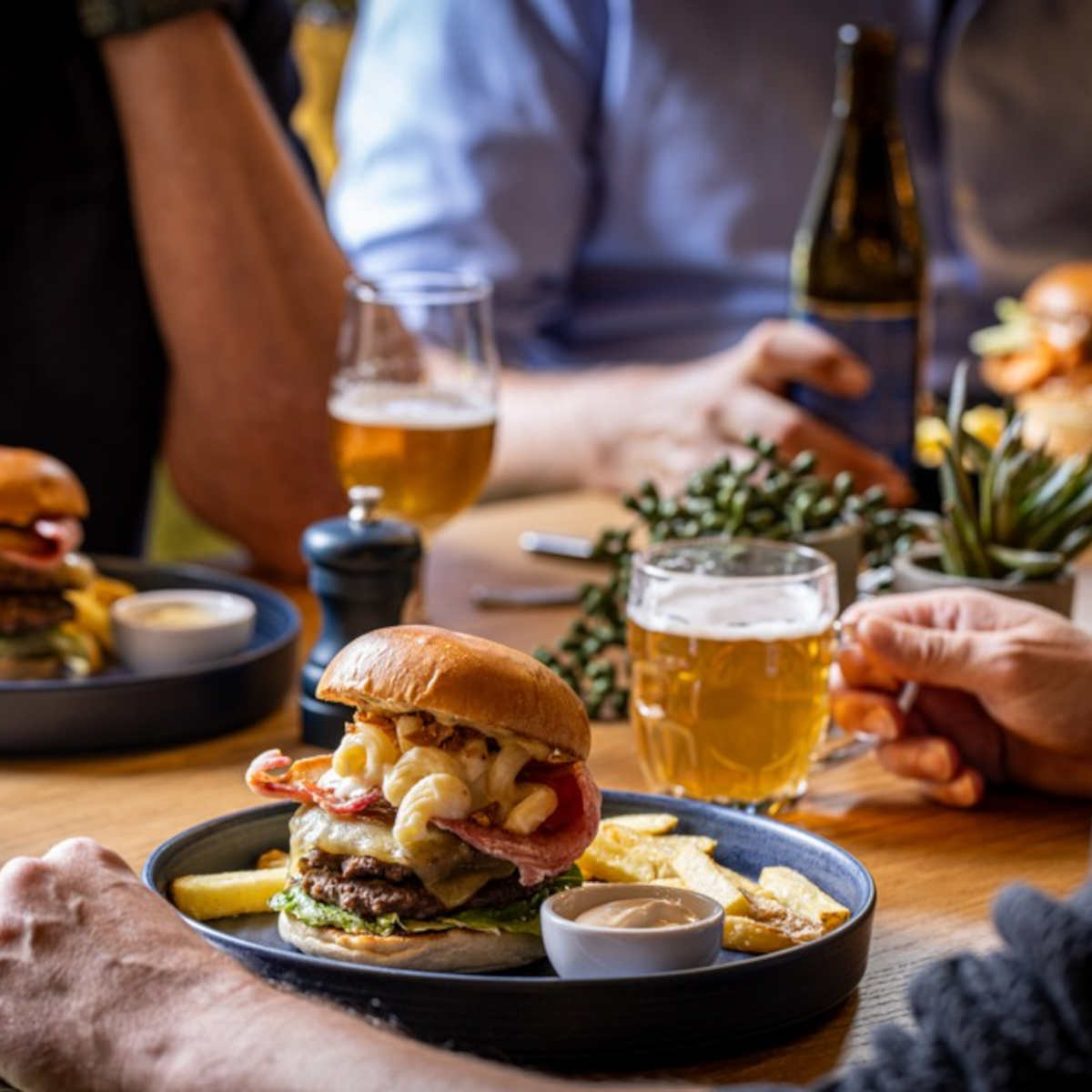 Our seasonal menu features fresh flavours, iconic pub classics and tender cooked meats. Covering a variety of occasions, from a sit-down Sunday roast to a few nibbles with friends, enjoy the informality and familiarity a pub trip brings.
